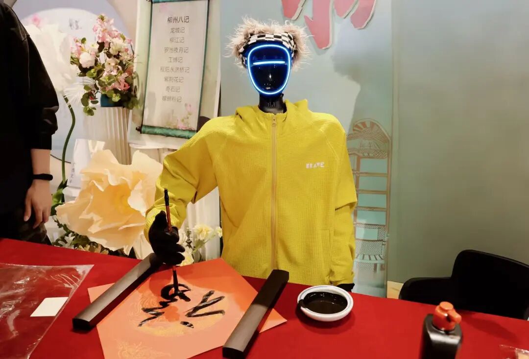 南宁、柳州等地新华书店创新引入智能机器人新春趣味展演,为传统年俗注入科技活力。灵动的机器人随新春旋律翩翩起舞,瞬间点燃现场氛围;随后的机器人写福字环节更具巧思,机械臂挥毫泼墨,一笔一划书写出喜庆福字,为现场增添浓浓年味,让市民在科技魅力中感受传统年俗的别样韵味。这种“科技+文化”的融合形式,吸引了大量年轻群体参与,显著提升了活动的互动性与传播力。