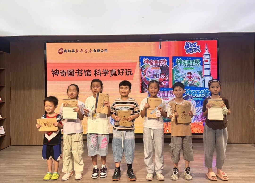 宾阳县新华书店开展《神奇图书馆》主题阅读科普活动,带领小读者走进奇思妙想的科学世界。在“人体探秘”环节,孩子们跟随书中的线索,学习器官功能、蛀牙原理、味蕾分布等知识;在“恐龙大揭秘”中,霸王龙、三角龙等趣味故事引得阵阵惊叹。随后的知识问答环节气氛热烈,大家踊跃抢答。“会站立的牙签”科学小实验将活动推向高潮:牙签在清水中漂浮倒下,加入洗洁精泡沫后竟稳稳直立。孩子们亲手操作,兴奋地观察、讨论,直观理解了表面张力的原理,真切感受到科学无处不在的奇妙魅力。本次活动将阅读与科学探索巧妙融合,参与的小读者不仅收获了丰富的科普知识,更产生了探索未知世界的好奇心,激发了主动学习的热情。(宾阳县新华书店)
