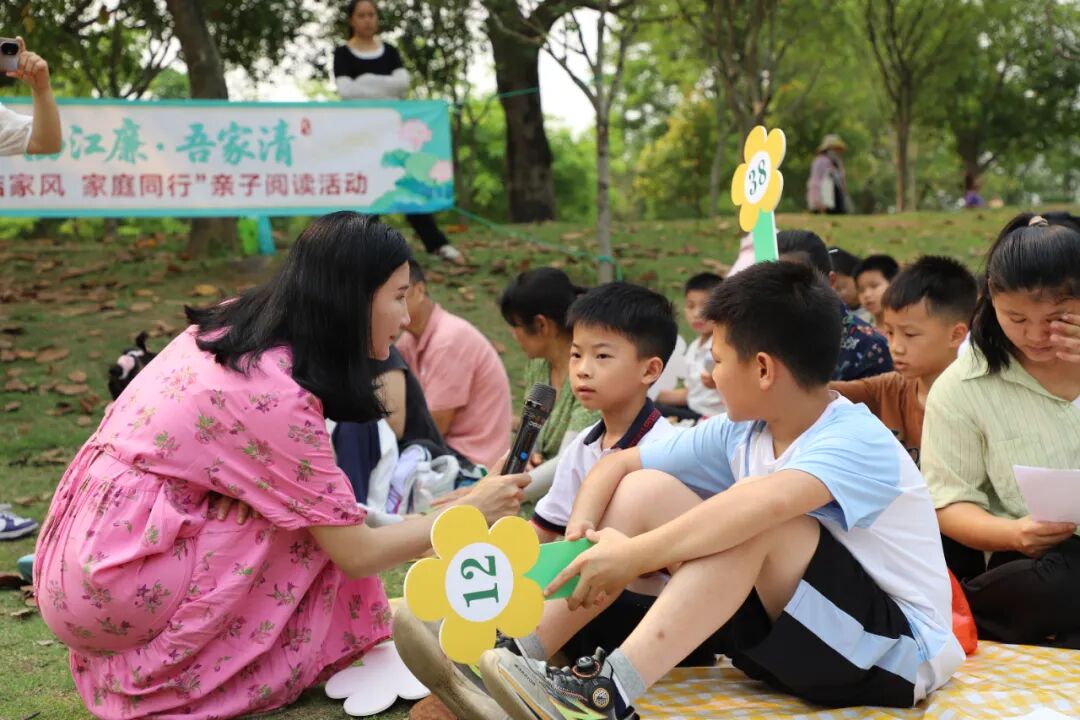 4 月 11 日,“书香漫草坪・童阅伴春风” 亲子诵读会暨“‘桂姐姐’大宣讲” 活动温情启幕,数十组家庭相聚草坪,以书香为纽带、诵读传真情。活动伊始,“桂姐姐”深情讲述全国三八红旗手标兵祝雪兰深耕六堡茶产业、带领乡亲致富的励志故事,以身边榜样传递巾帼担当,让家国情怀种子悄然生根,随后带领大家品读《习近平走进百姓家》(第二辑),分享亲子阅读方法技巧,倡导以陪伴互动滋养心灵、传承优良家风。“我家的幸福小事” 分享环节中,家庭踊跃讲述温暖日常,趣味亲子互动游戏将氛围推向高潮,你比划我猜等闯关增进亲子默契。最后全场齐唱《五十六个民族》,在饱含民族团结深情的歌声中圆满落幕。(梧州市新华书店)