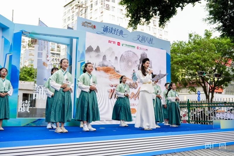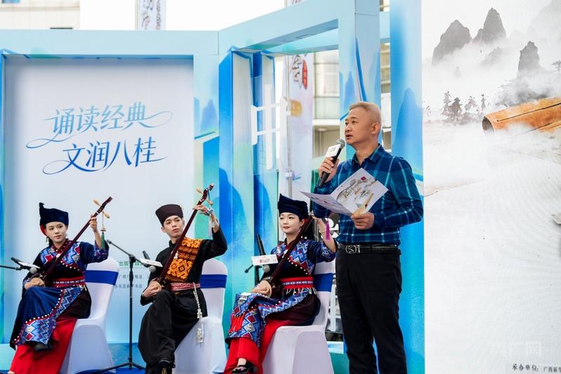 活动现场,来自南宁的少儿朗诵团以古诗联诵拉开序幕。孩子们身着整齐的校服,精神饱满,用清亮而澄澈的童声,点亮流传千年的经典诗篇,让古老的文字有了温度与色彩,赢得现场阵阵掌声;广西非物质文化遗产代表性项目——天琴的弹诵表演同样令人瞩目,传承人在现场演奏,与诵读者默契配合,呈现出一场“非遗器乐+经典文本”的跨界对话,古朴悠扬的琴声与豪迈深情的诵读声交织共鸣,生动展现了广西民族文化与中华文脉之间的深情交融与双向奔赴。